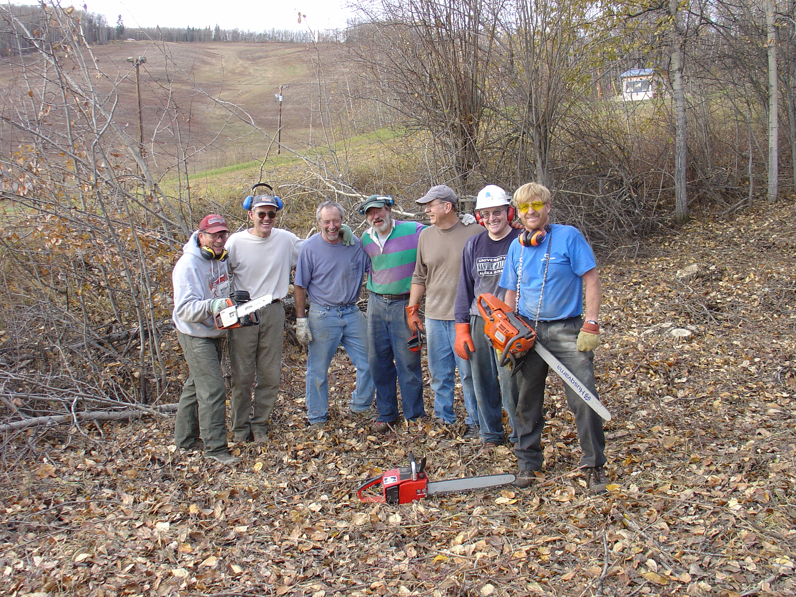 “Seven SCUM with an average age of 63 and one red-headed Irishman shoveled snow under the Steese bridge this evening. It looked like someone had already dumped a few loads before our arrival. When you ski gracefully under the bridge thank Carl, Bob M, Eric, Terry, Frank, Andy, Donovan,myself and Dave B(the anonymous person(s)). Volunteer trail work this week totaled 16 person hours of snow hauling and 2 1/2 hours of brush cutting.