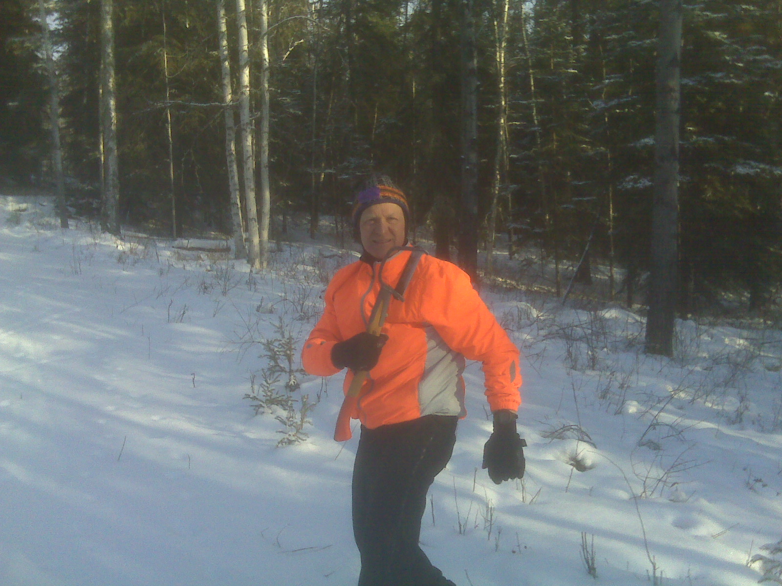 The amazing man in orange inspired us all winter when Birch Hill trails were less utilized than they are in springtime (photo by Bill Husby).