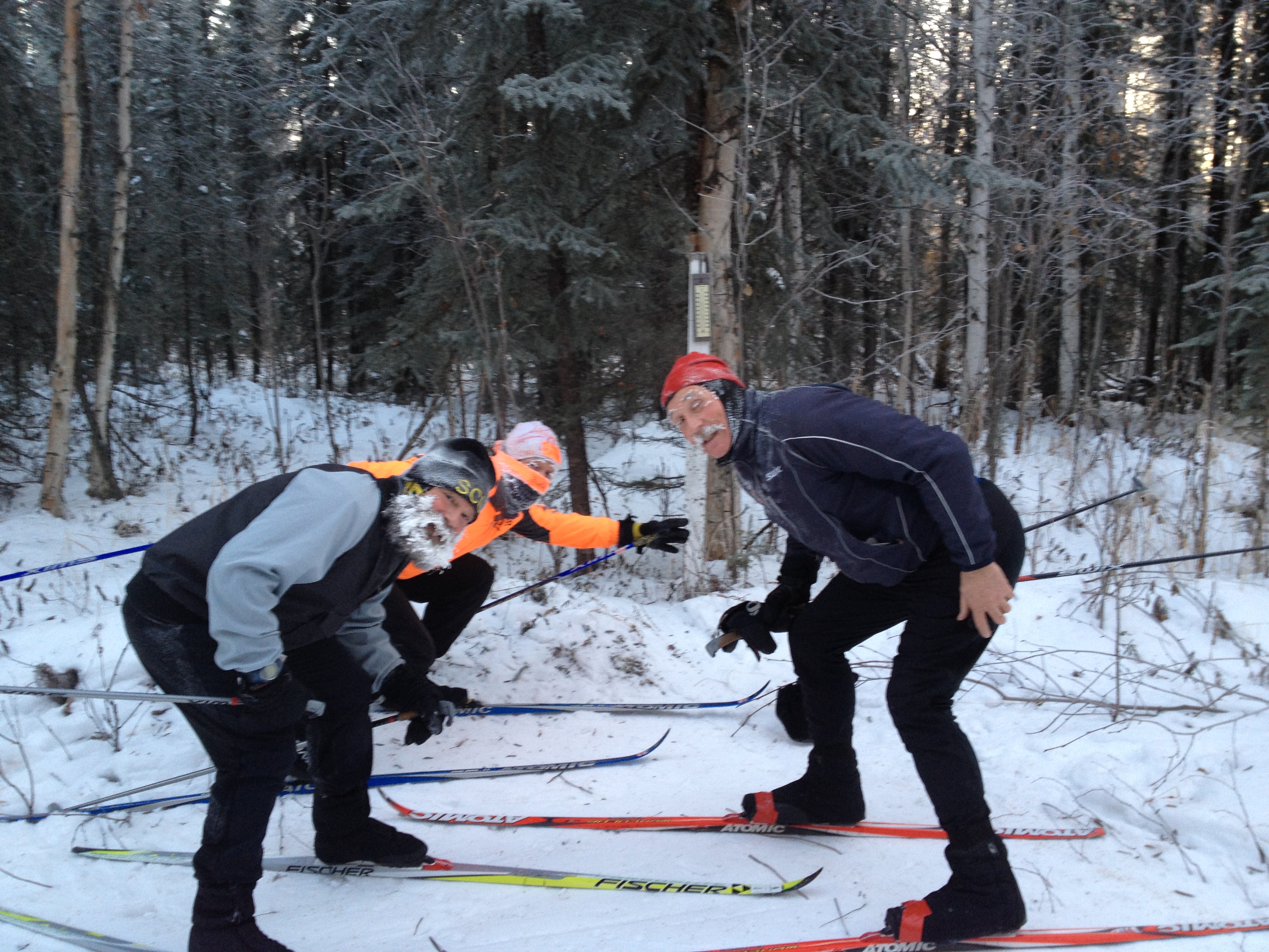 Although we requested a sunny spring day for the 26th Sonot Kkaazoot, the weather decided otherwise. Good news: the Chena River is definitely safe for skiing and has been groomed to perfection. Not so good news: the weather forecasters are predicting snow and significant SW winds with temperatures falling through the day. For non-elite wave that plans to be out on the trails for awhile, dress appropriately for the conditions and take advantage of the food and beverages at the feed stations. You can always leave a layer at a feed station and pick it up on the way back to the finish. All clothes and water bottles left at feed stations will be brought back to Birch Hill for the awards ceremony.