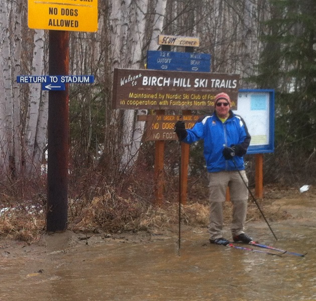 With 208 days of groomed trails at Birch Hill this season, we had a Mother’s Day farewell to this year’s extended Nordic skiing season. Some of us selected the snowy sections, while others sought a real transition to summer adventures. However, we all concluded that the Sunday ski was a fun way to end a record-setting winter in Fairbanks, AK.