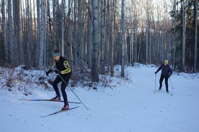 where a first year skate skier was leading a veteran classical skier up heartbreak hill on the White Bear trail.