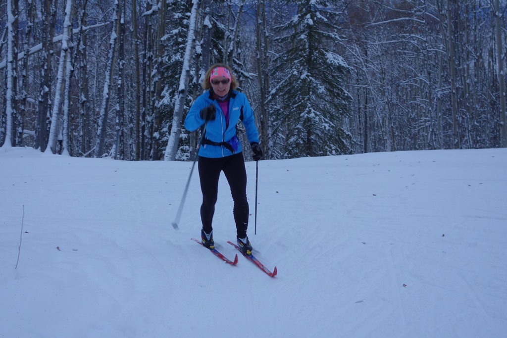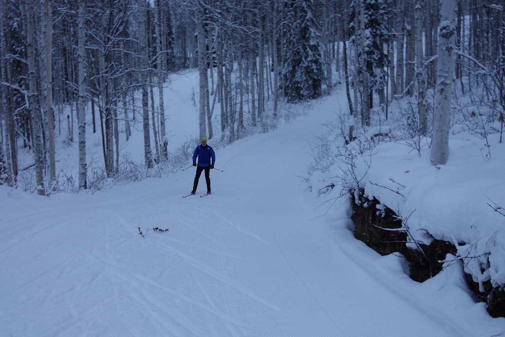 With an abundant cushion of snow, even the downhills on the black loops were less challenging, and we helped pack down the uphills that were still somewhat soft from the most recent snowfall.