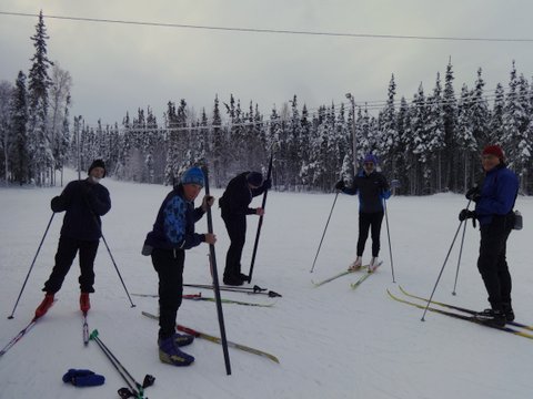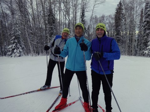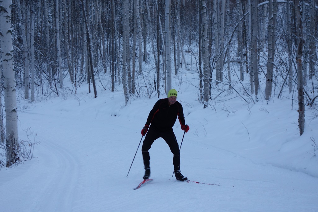 Interior Alaska nordic skiers had their Christmas wish granted as 4 or more inches of snow fell onto the hard and icy trails at Birch Hill and elsewhere in the Fairbanks area. Although groomers had a challenging time keeping up with the steady snowfall when skiers were out trying to ski their age in km on Friday; today all the trails had been groomed and tracked making for happy skiers.
