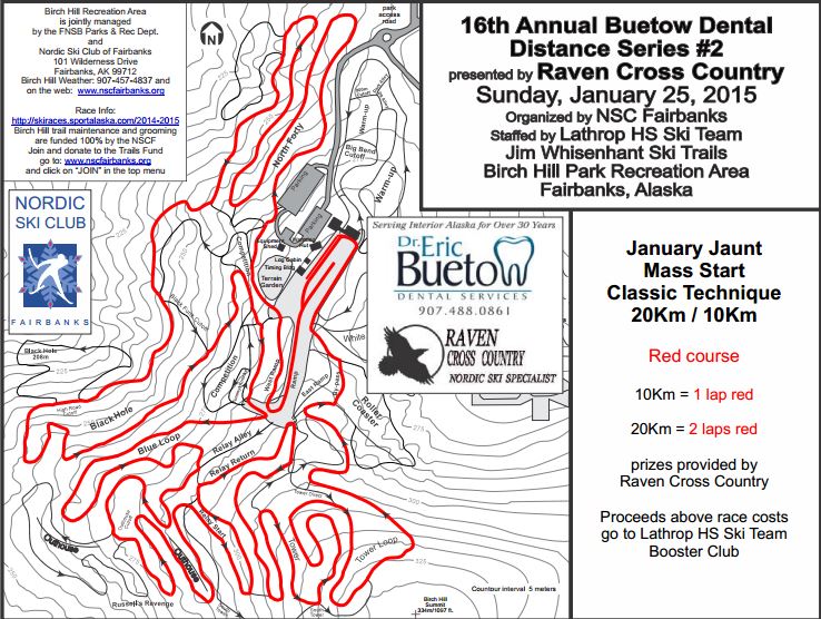 The Competition Committee of Cross Country Alaska decided last night to move Besh Cup Races 3 & 4 (scheduled for Soldotna on 17 and 18 January 2015) to Birch Hill. This change of venue was unavoidable because of lack of snow in the Kenai. Besh Cup Races 3 & 4 are both classical technique races (one sprint, one mass start) because the Besh Cup Race 1, held in Anchorage in December, needed to be changed from a classical to freestyle technique sprint format because of lack of snow.