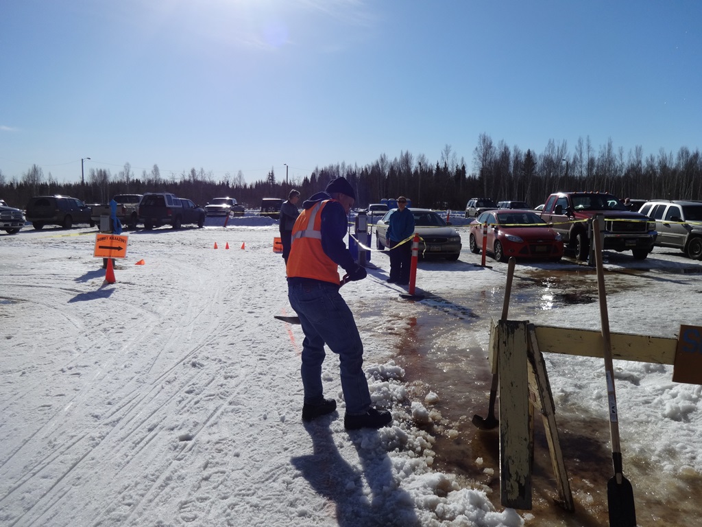 And following him are Frank Soos, head of Sonot bib pick-up and late registration followed by Eric Buetow, one of our Fort Wainwright road crossing team leaders.