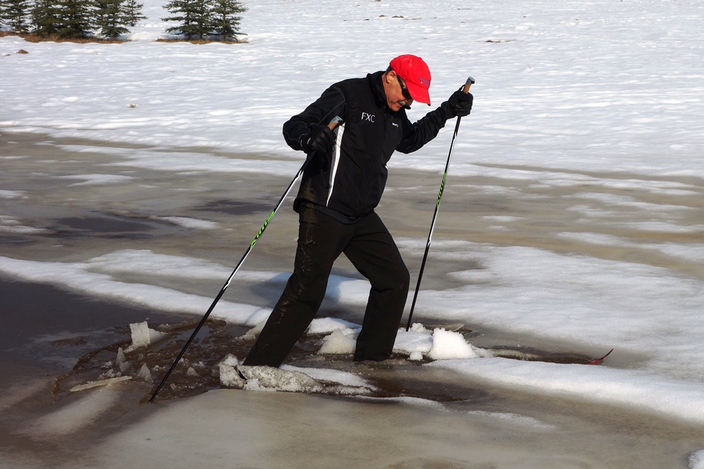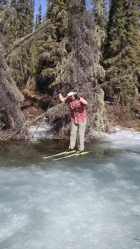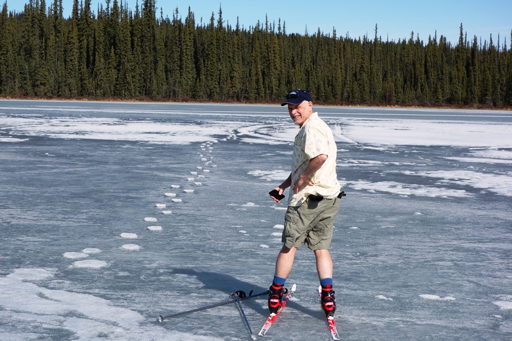 Skiing on Smith Lake on Earth Day in the sunshine,
