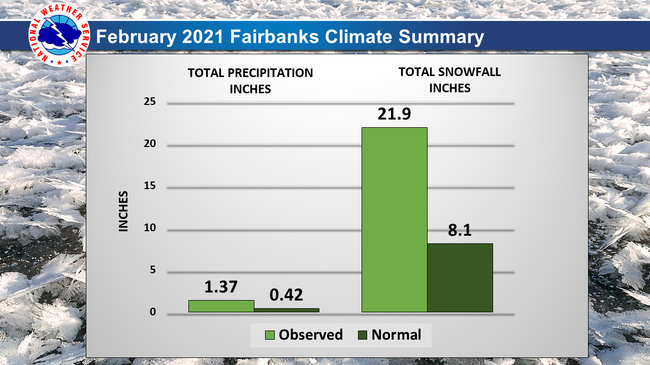 After our warm and dry January in Fairbanks, February brought back the cold and snow. According to the National Weather Service Fairbanks, here’s how the month stacked up.