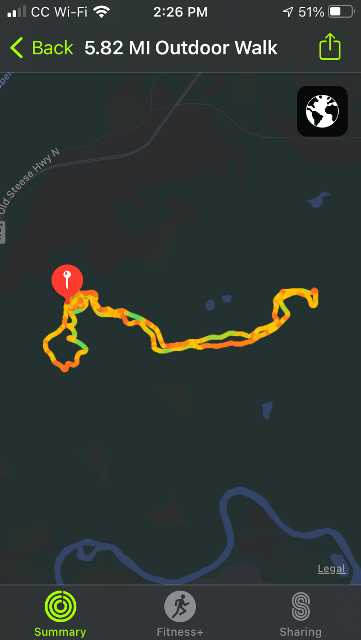 However, Robert must have taken some shortcuts on the course as his GPS shows a 5.82 mile outdoor walk.