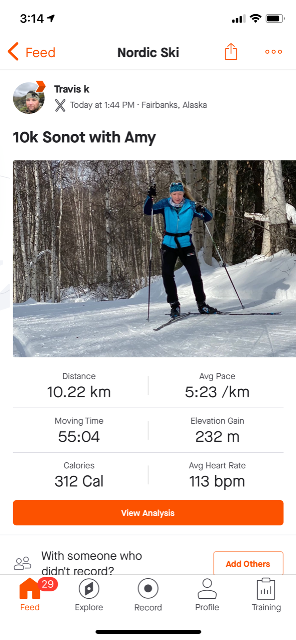 Amy Kulp skates 10 km virtual Sonot Posted on March 28, 2021 by Sonot Kkaazoot When Amy Kulp finished the virtual 10 km Denali State Bank Sonot Kkaazoot today, FXC skiers were cheering and ringing cowbells for her. Amy skate skied the course in 55:04 with Travis, who had already completed his 10 km ski on March 17. Share this: Click to share on X (Opens in new window) X Click to share on Facebook (Opens in new window) Facebook Like Loading... Related