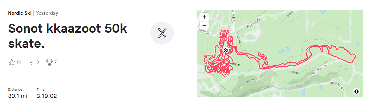 Riley Whisler was the only known FXCer to select the 30 KM course. The fleets of 50-somethings and 60-somethings out on the longer courses appreciated that Riley feigned being visibly taxed as she skied by them. There’s no doubt in this writer’s mind that she could have manageably tacked on a subsequent 50 KM — you know, in an effort to finally work up a sweat.