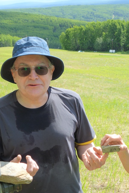 Here Dermot shows that he can carry one of the smaller rocks momentarily (with an assist) while Bill takes his photo: