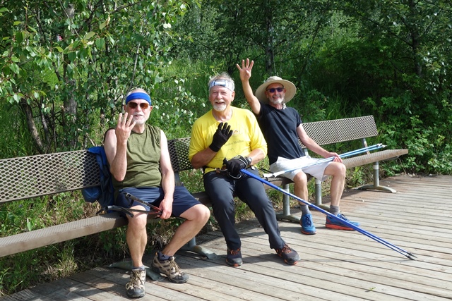 For the SCUM, each year increases the challenge. Last year, one 70 year old SCUM and two youngsters did 4 ascents of the Fort Wainwright chair lift trail for the 4th of July. (https://sonotkkaazoot.org/2020/07/03/4th-of-july-celebration-under-covid-19/).This year, we hoped to do better. However, last Friday (our normal ski walking day at FWW), winds blew smoke from the Munson Creek fire into Fairbanks so the air quality was hazardous. Thus, we delayed our workout until today.