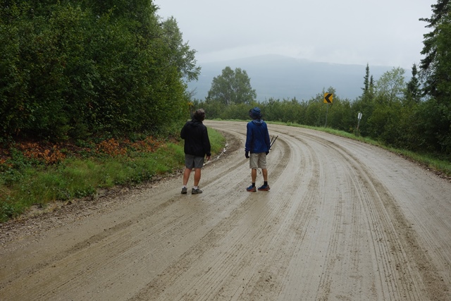 After a very dry summer, the recent rains have resulted in soft and slimey road surfaces with an occasional downed tree. SCUM attendence for today’s ascent (and descent) of Ester Dome was down in numbers and enthusiasm as seen in this first photo from the top: