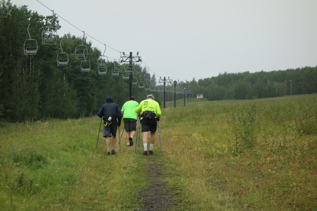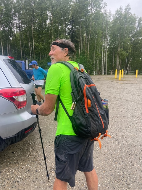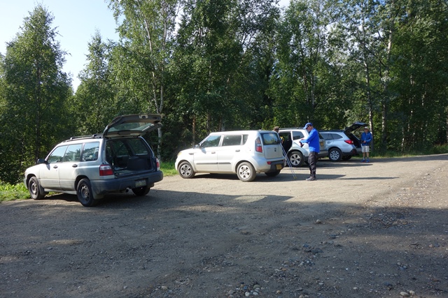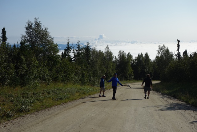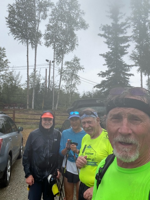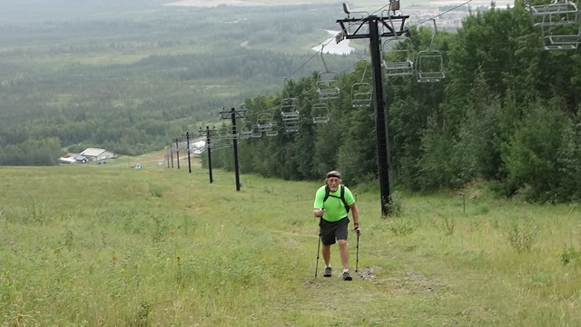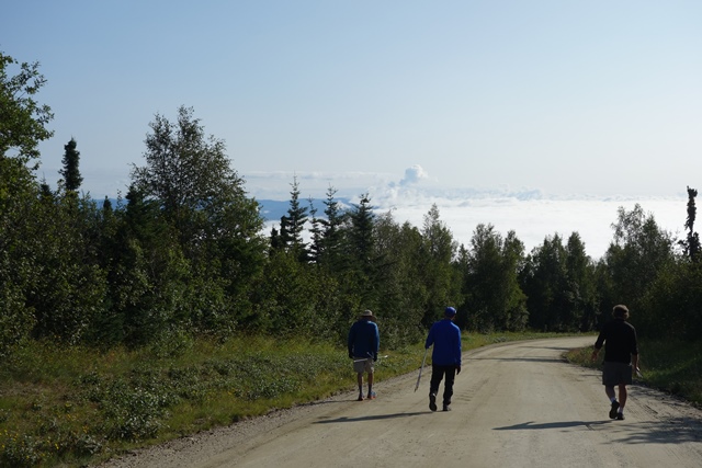 After several days of rain in Fairbanks, the SCUM were delighted to find blue skies on Ester Dome. There are no photos of the climb since Bernardo and Bill were moving WAY too fast. Bernardo had just returned from Palm Springs where it had been 109 deg F, so it was 70 deg cooler when we started climbing at 9 a.m from St. Pat’s. Seeing as Bernardo has absolutely no body fat, his “strolling” gait overtook all of us. Meanwhile, Bill was on a mission to get his ascent time under 50 minutes and achieved that by chasing Bernardo.