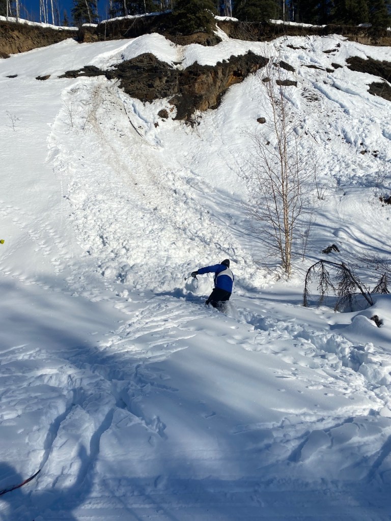 However, the real SCUM antics surfaced when they discovered a new avalanche patch on the Cliffside trail and in their delusional states from yesterday’s Sonot, thought they saw a body near the bottom of the avalanche requiring investigation.