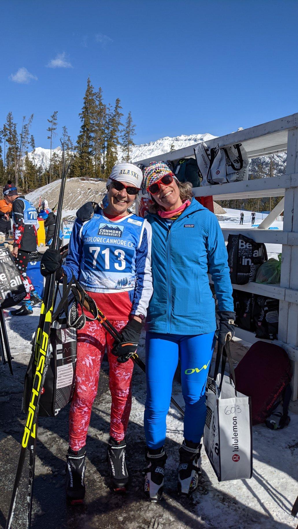 Bad Bob and Sharon Baker, and Donna DiFolco skied in World Masters in Canmore last week. What a glorious setting! Notice Bad Bob wore his 30th anniversary Sonot Kkaazoot hat while skiing the 30 km FS race: World Masters are a great event for sharpening your training for the Sonot Kkaazoot.