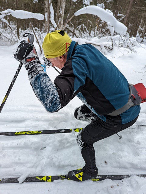 Although “the graveyard” (aka Miller Hill) section of the Skarland Trail hadn’t been groomed, most of the SCUM and others managed to negotiate the ungroomed sections, but none as skillfully as Sam Bishop.