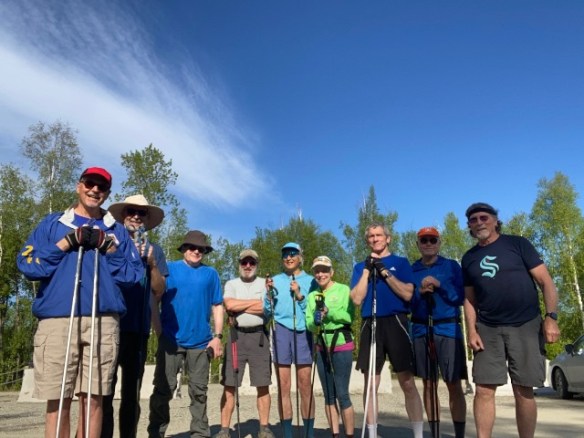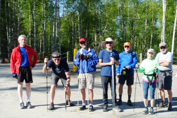 With the Birch Hill trails officially open for the “dryland” season, the SCUM and friends gathered at 10 a.m. today for our inaugural climbs of the Fort Wainwright (FWW) alpine hill. On a 60 deg morning, this was by far the largest training group to date. I tried to assemble a group photo, but it was only of the early arrivals: