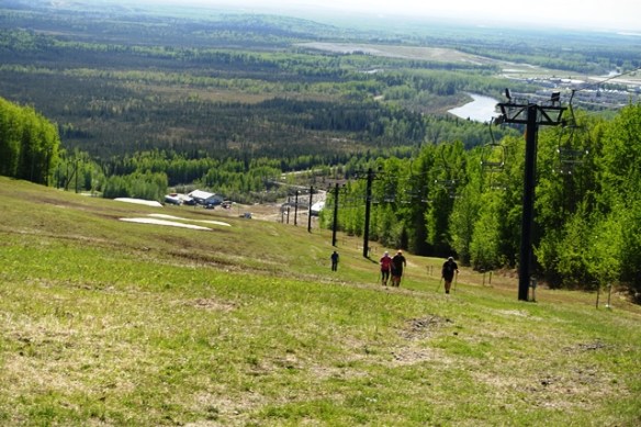 It was a glorious day to be outside. We saw Alaska Fire crew and others on the FWW alpine hill and a large group of hikers on the Birch Hill trails as we were returning to the stadium on the Tower Direct. Some of the trails are still wet in places but it’s pretty easy to avoid them.