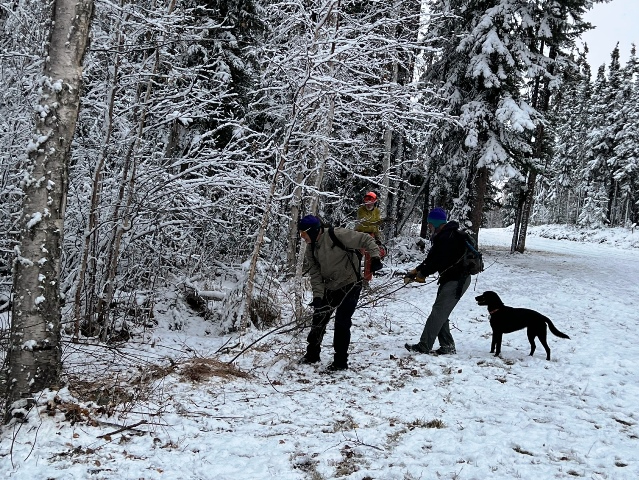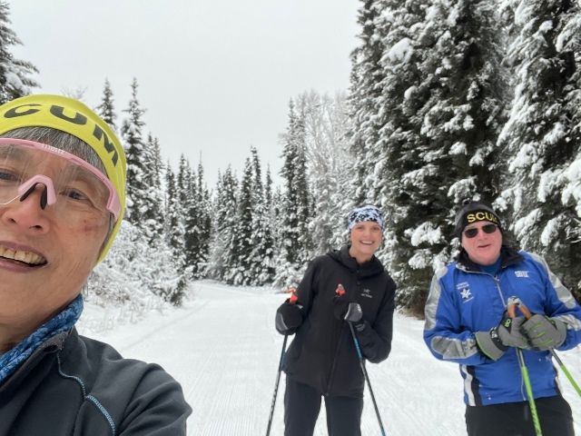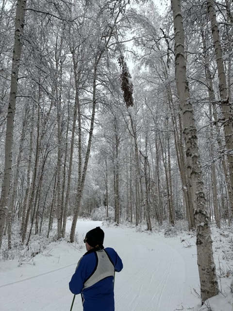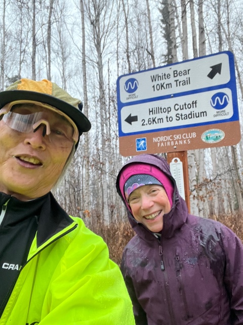 A huge thank you to the Nordic Ski Club of Fairbanks groomers who made possible for the SCUM to ski the entire White Bear on their first outing on skis for the season. Seeing as we had just finished a major trail brushing effort, we were disappointed to see that the wet snow created hazards that we hadn’t seen last week.
