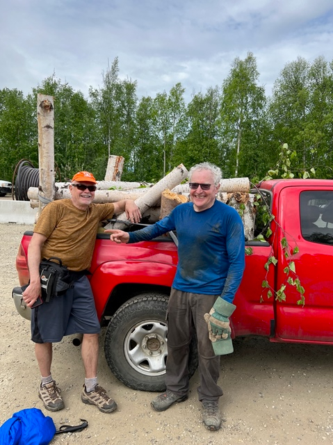 Tim Woster had ski walked 4 ascents of the Fort Wainwright alpine hill on 9 June with Mom. Today we paced ourselves so that we kept our effort in level 2 for the most part going up the hill. The FWW contractor was hydroseeding the bottom and top of the alpine hill today so we couldn’t take our usual route at the very bottom. However, Dan and Bill still started next to the ski lift hut: