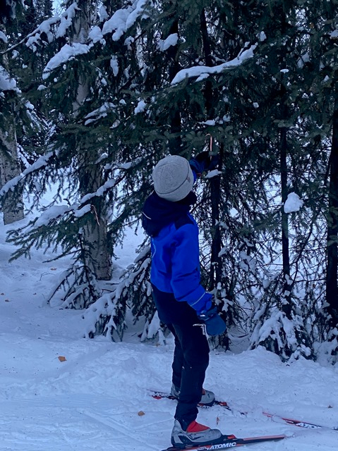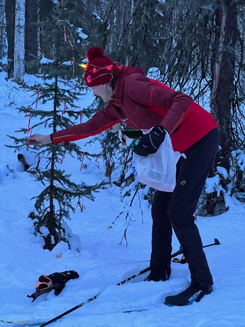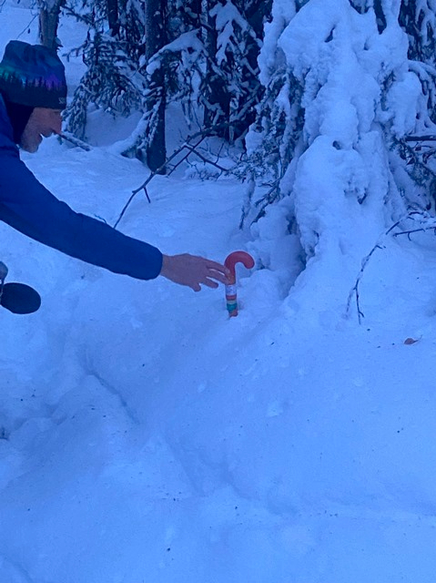 One skier found one of the candy canes full of chocolate kisses: