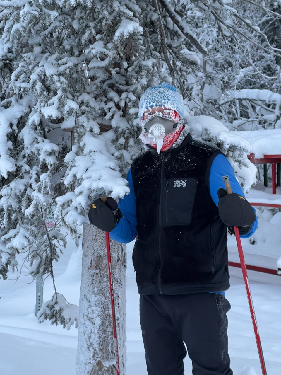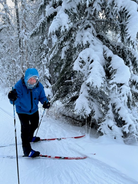 Today it was -23 deg F in the Birch Hill stadium at 10:30 a.m. but the temperatures dropped as we lost elevation. However, the newly groomed trails were fast allowing us some “free speed” on the graduals and downhills. Jeff Conn kept his speed in check and spotted LOL ornament #10 shown below: