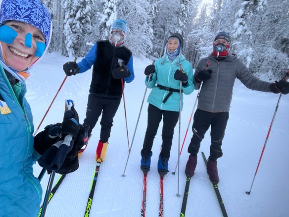 Today the thermometer on the building said -19 deg F when we started and -12 when we finished. We managed to ski 10 km (all but about 1 km on pistenbully tracks) in a little more than 90 minutes. This is not bad considering that 3 of us are well over 70 years old and the kid among us had gotten her second shingles vaccine earlier in the week.