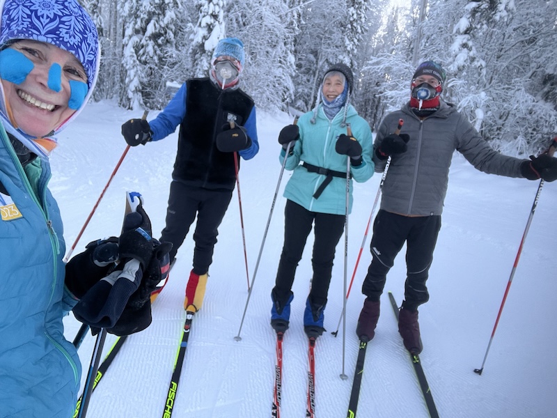 Although December had 12 days with temperatures below -40 deg F at the airport and January has continued that trend, the SCUM workouts have been no colder than -25 deg F in the stadium, although temperatures dropped much colder on lower lying trails. Descending the Warmup Loop (not an accurate descriptor today) at the end of our workout, I developed a severe ice cream headache that didn’t resolve even on the uphill sections. It was definitely below -25 deg on Wake Up Loop.
