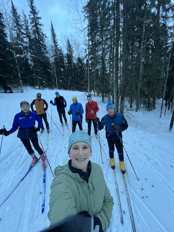 After finishing our tour of the 10 km race course today, we knew that we’d be able to ski 20 km on Saturday when the trails will have newly laid corduroy on them. Join us in honoring our friend, Frank, whose spirit will be accompanying us. We need this 20 km test. The 39th Denali State Bank Sonot Kkaazoot is just 2 months away.