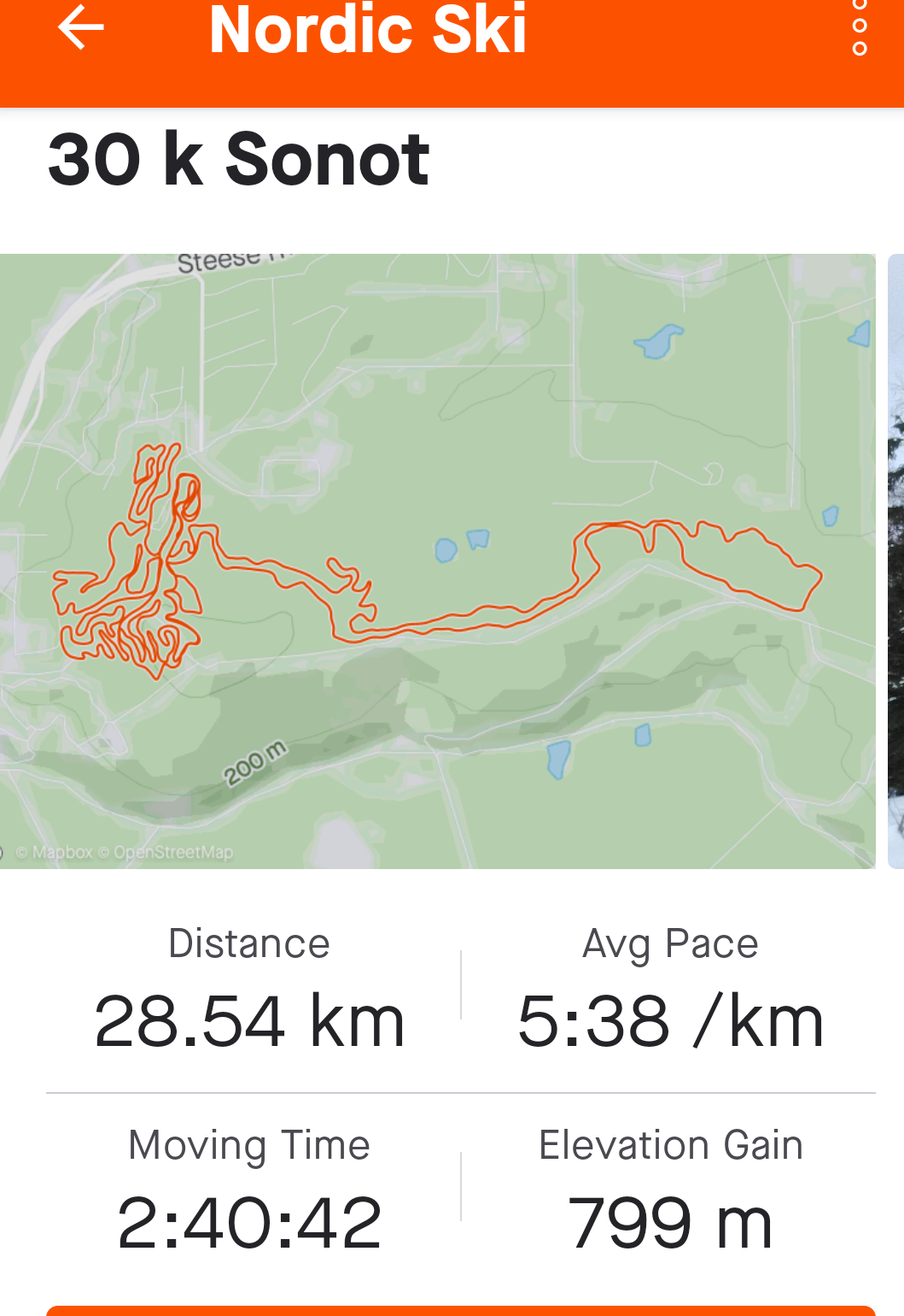 Saturday morning, Dan Johnson skate skied his 30 km virtual Denal State Bank Sonot Kkaazoot in an official time of 2:43:38.