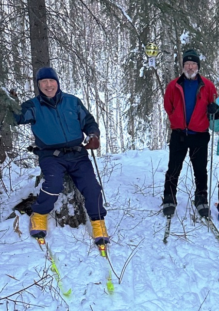 After the Outhouse loop, we followed Bill as he wanted to check out all the trails that Randy had groomed. Sometimes following Bill means skiing trails differently than how they are laid out. Rudolf missed a turn on the Tower Direct.