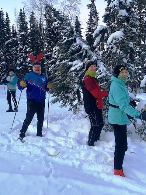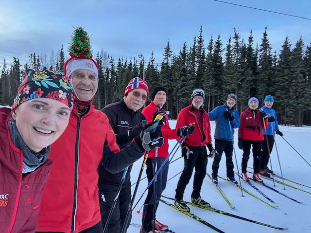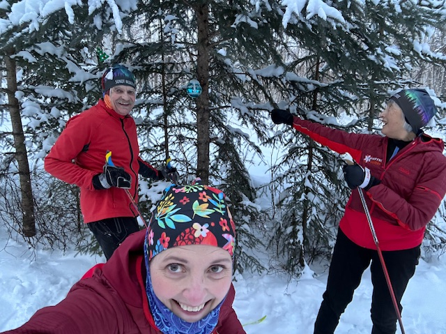With the SCUM volunteering for the recent Alaska Nordic Cup on the new Usibelli FIS ski trails at UAF last weekend, only one of the LOL ornaments of Christmas has been located. It’s not because of lack of holiday spirit as here’s the gang of SCUM looking around the trails today.