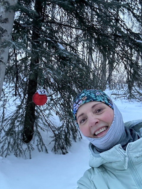 Eric captures LOL ornament #11 that was on a trail that he didn’t check on Christmas ski