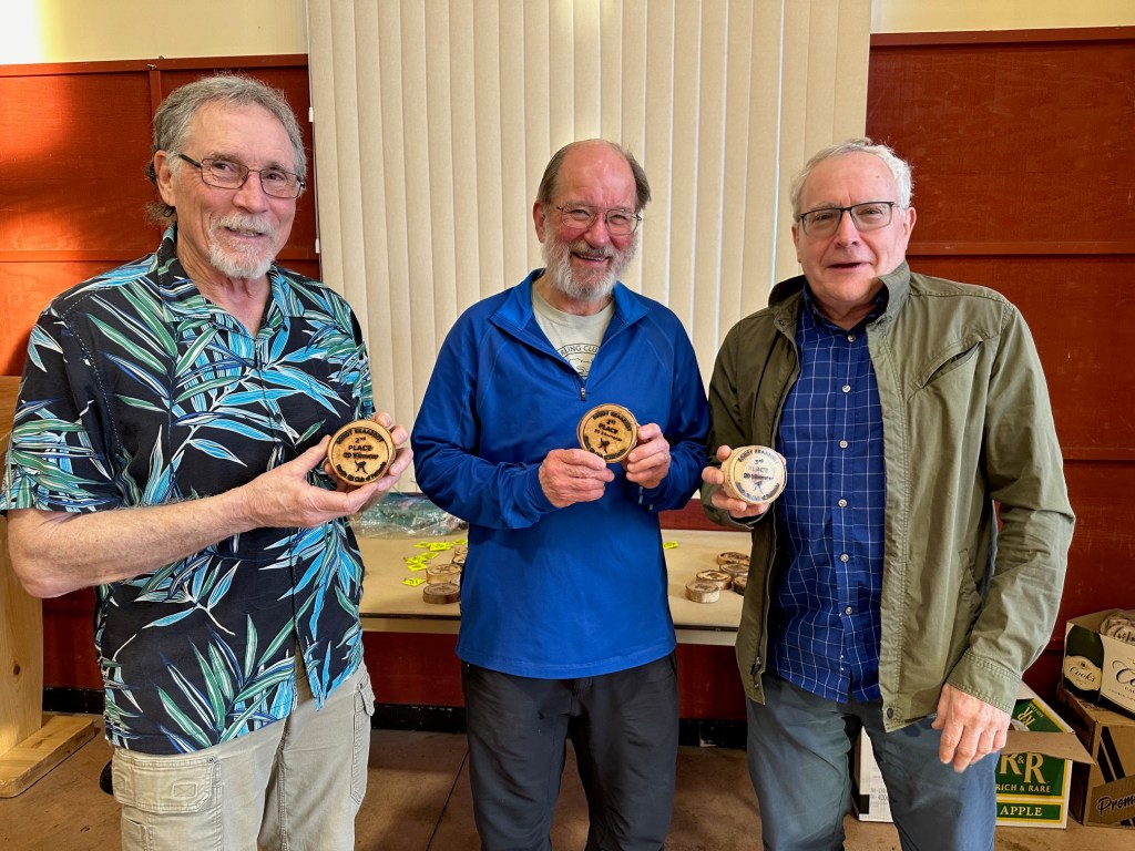Woodel winners in M09 men in 30 km Sonot Kkaazoot–Bill Husby (2nd), Mike Schmoker (first), and Dermot Cole (third)–Joanna Fox photo