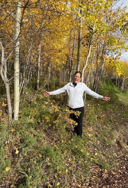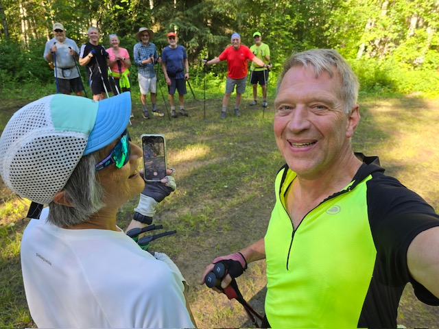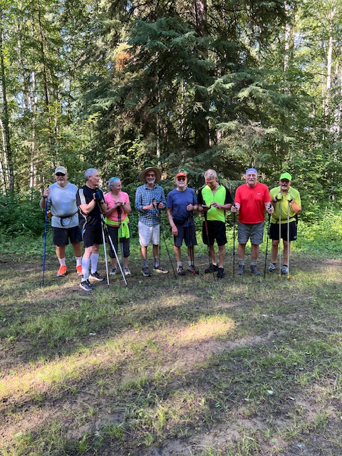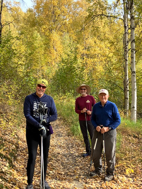 Where were these guys when we were ski walking up Ester Dome today? It looks like Robert thought they were skiing (hence, his SCUM ski hat) but Bill had other ideas (wearing shorts and a t-shirt). They were BUMs (Bill’s Uncoachable Men) again today–leaving early and changing the course. However, we all agreed that it was a lovely autumn day.
